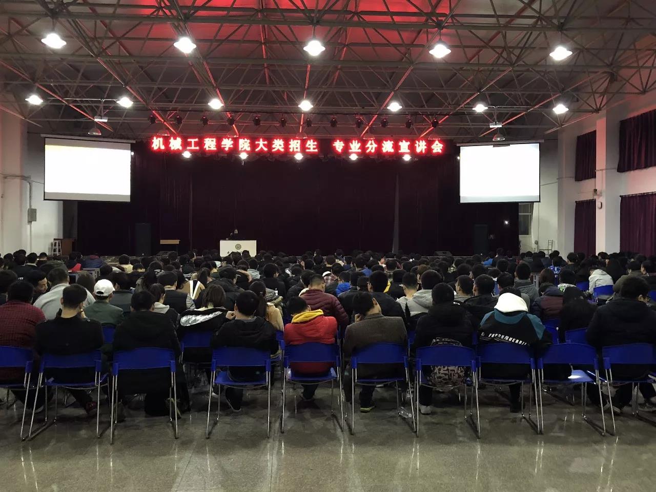 2017年12月12日,機(jī)械工程學(xué)院在臨潼校區(qū)學(xué)生第二俱樂(lè)部開(kāi)展“機(jī)械工程學(xué)院機(jī)械大類招生專業(yè)分流宣講會(huì)”,會(huì)議由周學(xué)剛老師主持,機(jī)械工程學(xué)院材料成型系主任尚可超老師,工業(yè)工程系主任王昀睿老師,機(jī)械工程學(xué)院機(jī)械電子系主任毛清華老師、機(jī)械設(shè)計(jì)系主任喬心州老師、機(jī)械制造系主任方秀榮老師、機(jī)械工程學(xué)院車輛工程系主任趙栓峰老師、儀器科學(xué)與技術(shù)系樊紅衛(wèi)老師、16級(jí)輔導(dǎo)員老師程鵬、楊芝以及機(jī)械類2016級(jí)全體學(xué)生參加。