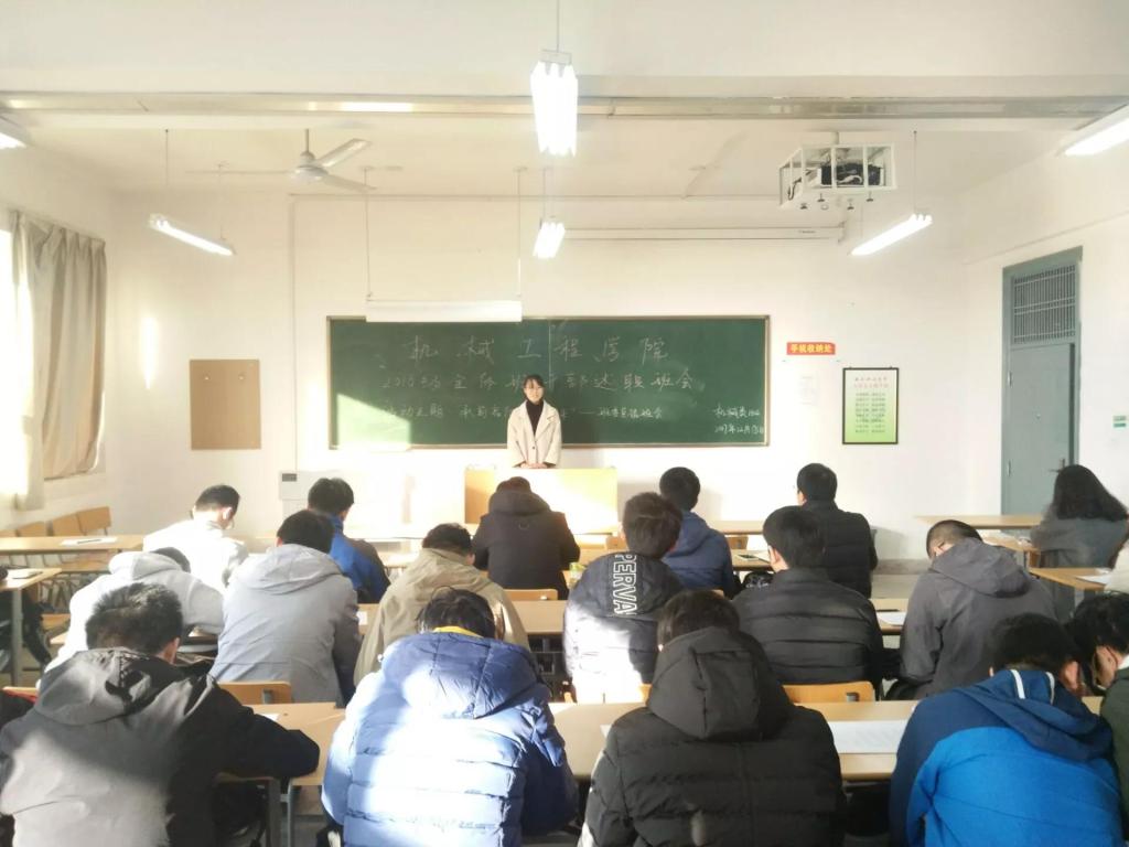 為了更好的完善學(xué)生干部管理制度,了解各班班級(jí)情況,進(jìn)一步提高班委的工作水平,促進(jìn)學(xué)院學(xué)風(fēng)建設(shè),2017年12月18日,機(jī)械工程學(xué)院召開(kāi)2016級(jí)班干部述職大會(huì)第一講。大會(huì)分為兩個(gè)會(huì)場(chǎng),第一場(chǎng)會(huì)議由2016級(jí)輔導(dǎo)員程鵬老師主持,機(jī)械類1602班全體同學(xué)參加;第二場(chǎng)會(huì)議由2016級(jí)輔導(dǎo)員楊芝老師主持,機(jī)械類1601班全體同學(xué)參加。