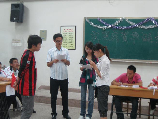 10月5號,闖過預賽的09級車輛和工業(yè)代表隊,08級車輛和機電代表隊,07級工業(yè)和機設1、2班代表隊。參加了在3教學樓314舉行的決賽。機械學院團委書記陳霂和輔導員張耿、張立顯觀看了決賽。此次決賽競答題的內容主要與建國60周年以來我國的歷史、經濟發(fā)展有關。題目類型也非常有趣,包括必答選擇題、抽簽題、填空題、簡述題。比賽中同學們積極競答,展現(xiàn)出自己豐厚的知識底蘊,同時隊內互相幫助,團隊合作默契。最后,經過激烈的“戰(zhàn)斗”車輛08級的同學獲得冠軍。
