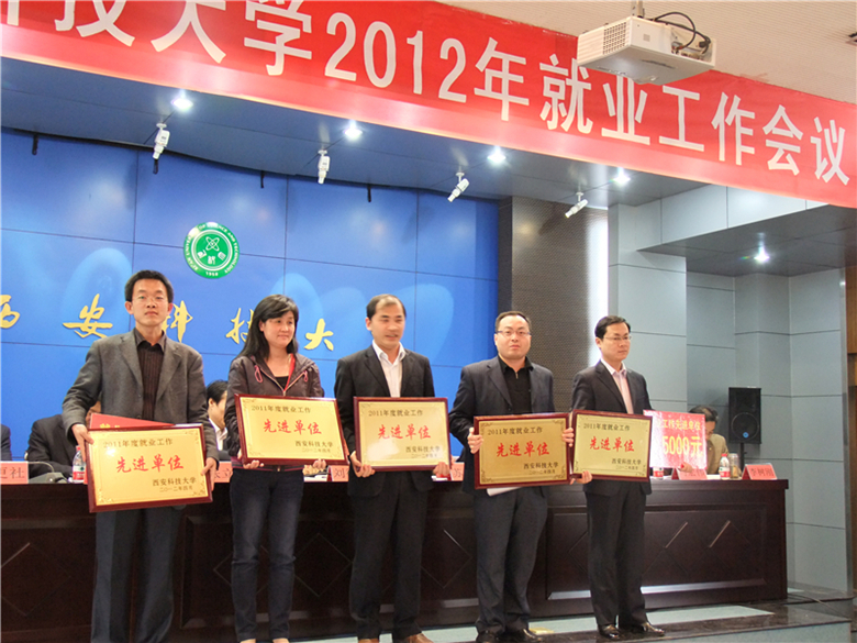 4月12日下午,西安科技大學(xué)2012年就業(yè)工作會(huì)議在臨潼校區(qū)第二會(huì)議室順利召開(kāi)。校黨委書記劉德安,校長(zhǎng)蘇三慶,黨委副書記張立杰、甘安生,紀(jì)委書記李智軍,副校長(zhǎng)韓江水、楊更社、馬宏偉、張金鎖、李樹(shù)剛,總會(huì)計(jì)師黃英維,各單位、各部門黨政主要負(fù)責(zé)人,各學(xué)院分管學(xué)生工作的書記參加了會(huì)議。會(huì)議由黨委副書記甘安生主持。我院在會(huì)上喜獲表彰,被評(píng)為2011年度就業(yè)工作先進(jìn)單位。