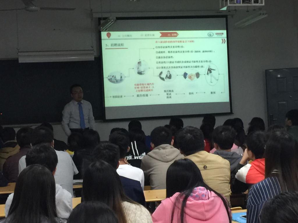 10月20日,我院借助學(xué)院教師力量邀請江蘇省沭陽縣人事局及所屬近百家當(dāng)?shù)仄髽I(yè)的部分負(fù)責(zé)人來我院召開大型專場招聘宣講會。宣講會于當(dāng)天下午14:30在9教101教室進(jìn)行。會上,瑞聲精密電子沭陽有限公司、江蘇威拓公路養(yǎng)護(hù)設(shè)備有限公司等企業(yè)先后做了公司招聘宣傳,現(xiàn)場氣氛活躍。