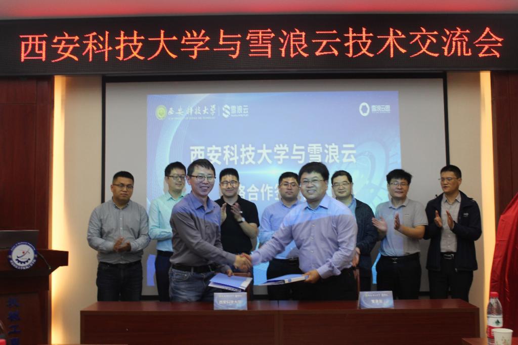 9月29日上午,在機(jī)械工程學(xué)院210會議室召開了西安科技大學(xué)與雪浪云技術(shù)交流會。西安科技大學(xué)副校長鄧軍、科技處副處長戴開文、資產(chǎn)經(jīng)營公司副總經(jīng)理賈文勝,機(jī)械工程學(xué)院書記張金來、院長張旭輝、副院長曹現(xiàn)剛等相關(guān)領(lǐng)導(dǎo)與雪浪數(shù)制科技有限公司CEO王峰、聯(lián)席創(chuàng)始人副總裁顧毅等進(jìn)行了技術(shù)交流座談會,并舉行了簽約和揭牌儀式。
