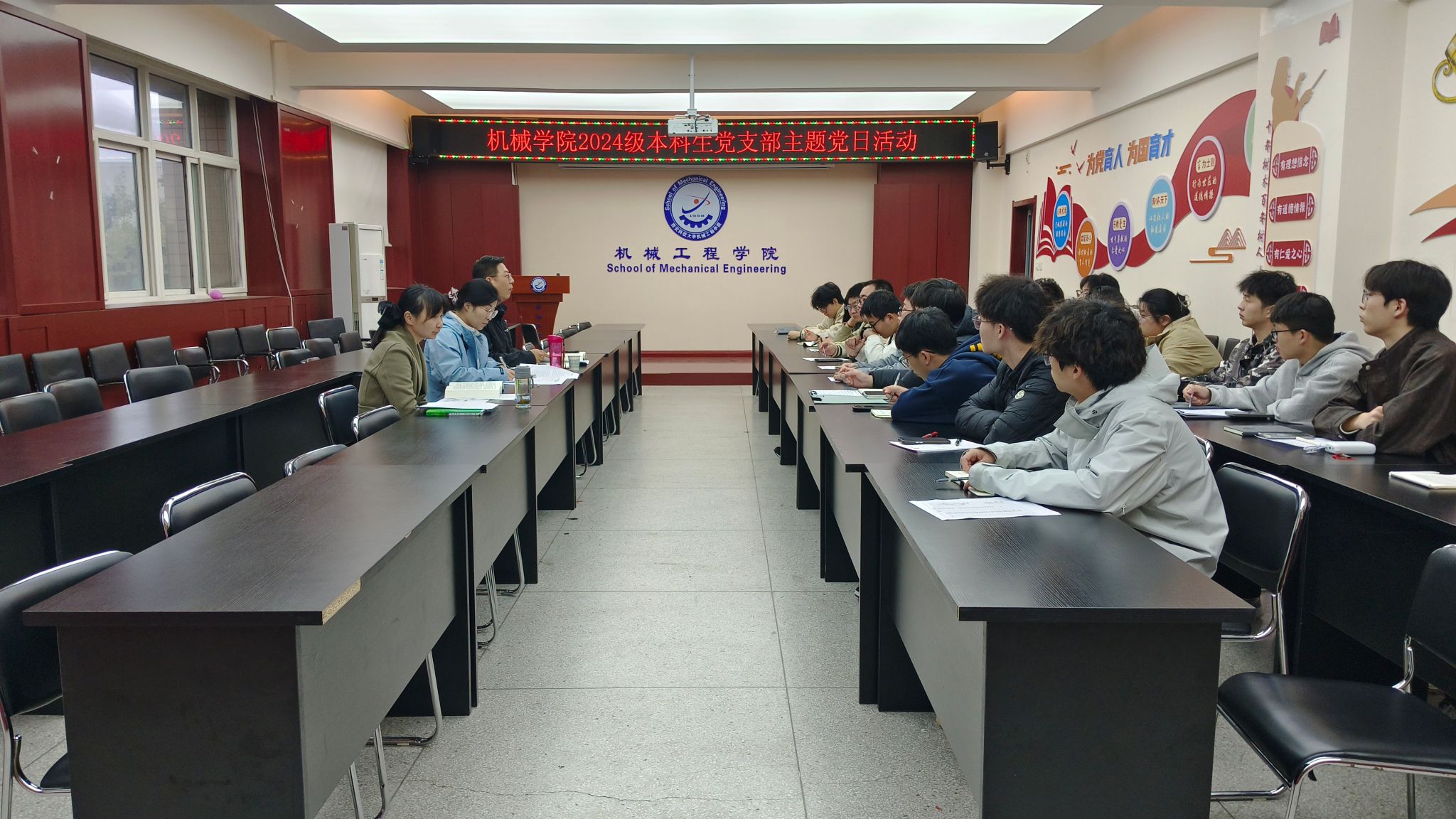 10月20日下午,機(jī)械工程學(xué)院2024級本科生黨支部在臨潼校區(qū)驪山校園開展“深入學(xué)習(xí)《習(xí)近平談治國理政》(第五卷)、筑牢機(jī)械學(xué)子信仰之基”主題黨日活動。活動由黨支部書記楊芝主持,黨支部全體成員及2024級學(xué)生入黨積極分子參加。
