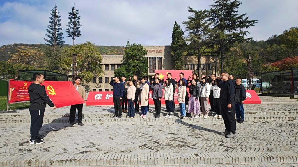 寶雞長樂塬抗戰(zhàn)工業(yè)遺址是國內(nèi)現(xiàn)存最完整的抗戰(zhàn)工業(yè)遺址,不僅是寶雞近代輕工業(yè)、機械制造業(yè)、電力工業(yè)的起源地,更是中國抗戰(zhàn)精神和民族工業(yè)精神的重要承載地。通過參觀,大家深刻感悟“天下興亡匹夫有責、百折不撓、堅韌不拔”的抗戰(zhàn)精神。全體黨員面向黨旗,高舉右拳,懷著敬仰之情,重溫了入黨誓詞,錚錚誓言,鏗鏘有力,既是對入黨初心的回顧和洗禮,也是對使命擔當?shù)某兄Z和信心。
