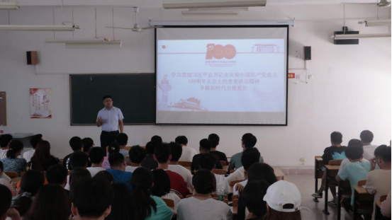 在全黨全社會迅速興起學習貫徹習近平總書記在慶祝中國共產黨成立100周年大會上的重要講話精神的高潮之際,7月8日,機械學院黨委書記張金來以“學習貫徹習近平總書記在慶祝中國共產黨成立100周年大會上的重要講話精神,爭做新時代合格黨員”為題,為學院學生黨員、入黨積極分子代表及所在支部全體黨員100余人講黨課。