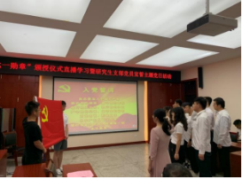 活動第二階段,新發(fā)展的1名博士研究生黨員、10名碩士研究生黨員和1名教師黨員佩戴黨徽,在領(lǐng)誓人聶的領(lǐng)誓下,面對黨旗莊重宣誓。