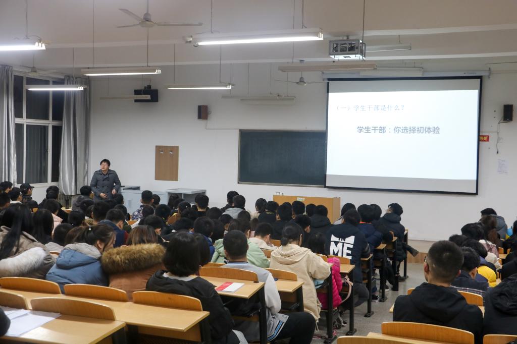 2018年11月19日晚,機(jī)械工程學(xué)院于九教104教室舉行了黨員干部培訓(xùn)大會第二講,機(jī)械工程學(xué)院團(tuán)委書記周學(xué)剛擔(dān)任此次會議的主講人。