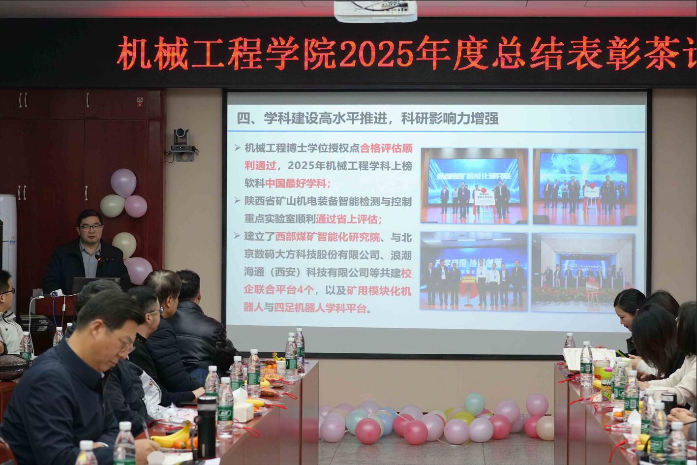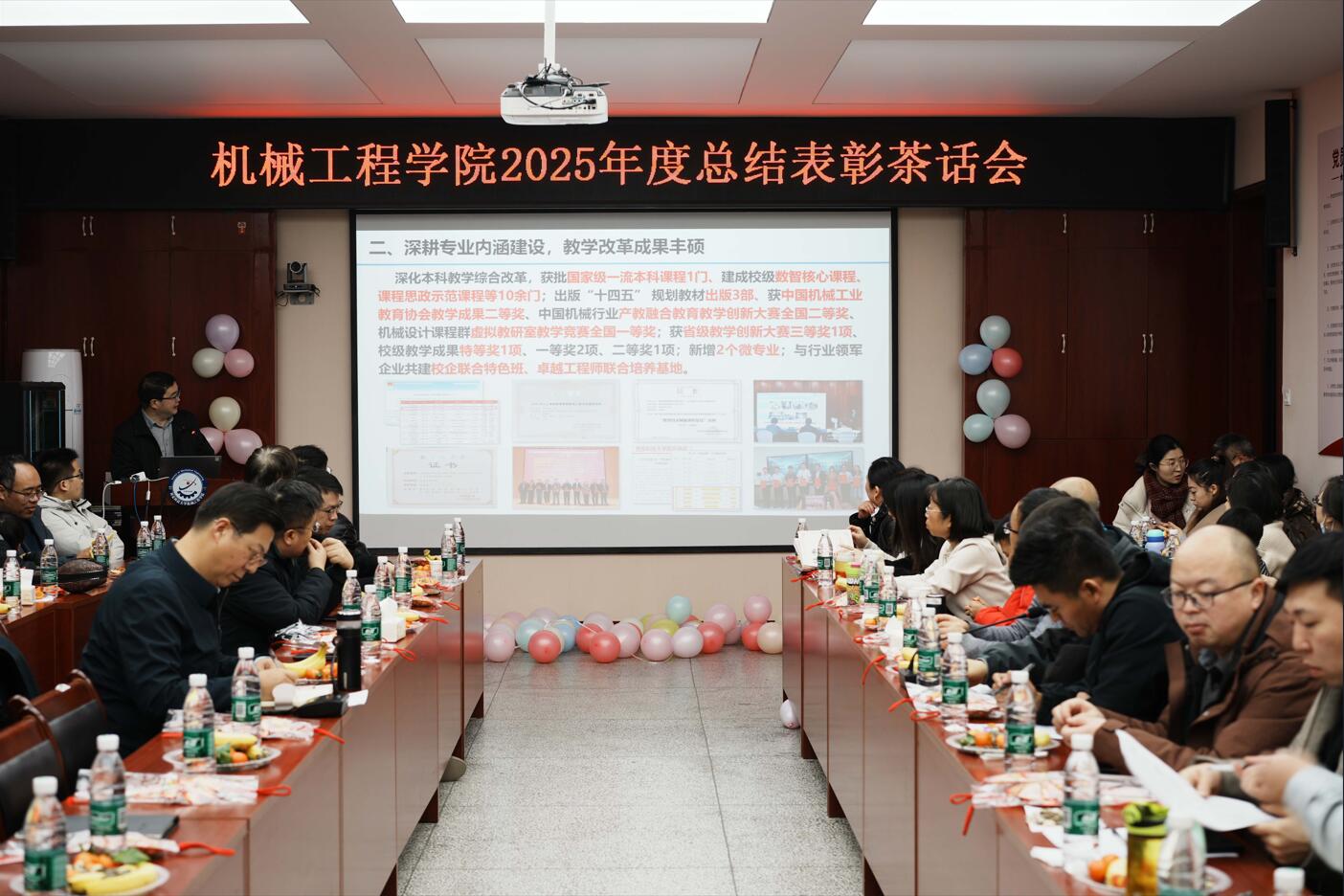 1月18日下午,機(jī)械工程學(xué)院在雁塔校區(qū)學(xué)院會議室舉行2025年度總結(jié)表彰茶話會。學(xué)院全體教職員工齊聚一堂,共同回顧過去一年的奮斗歷程,展望未來的發(fā)展藍(lán)圖。