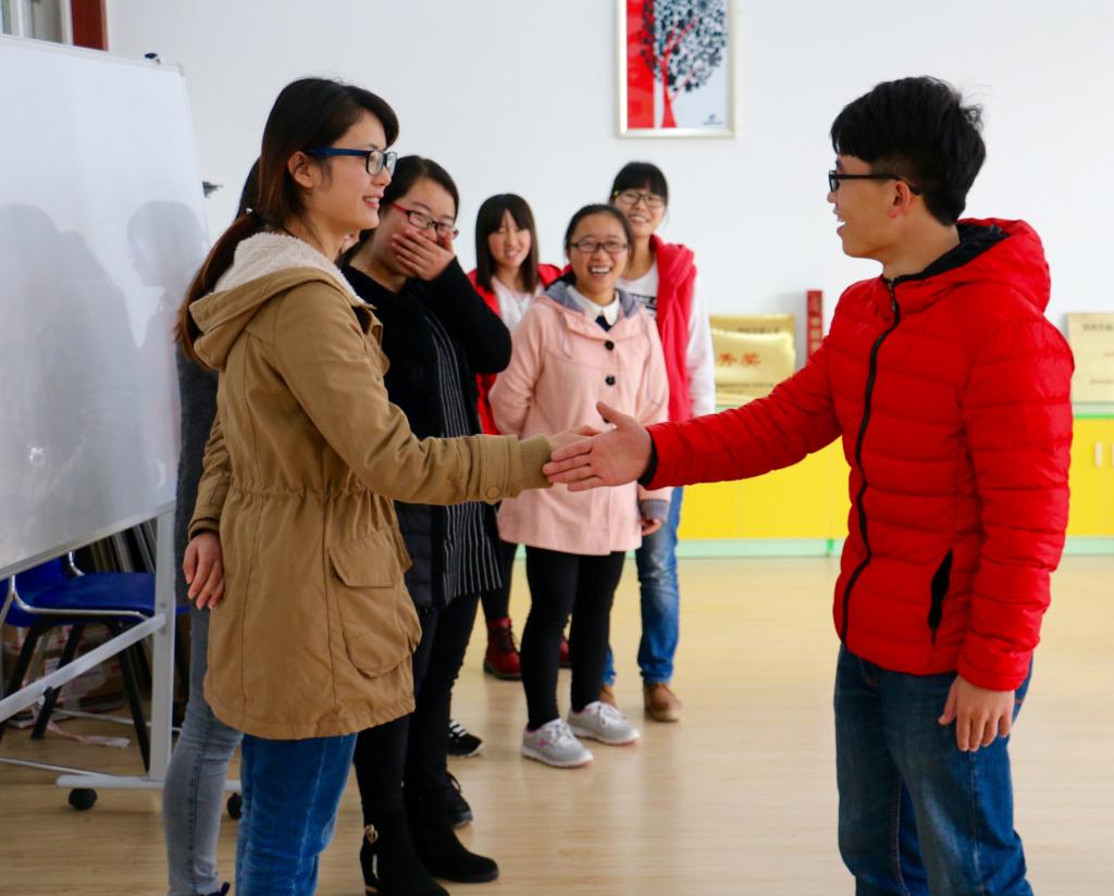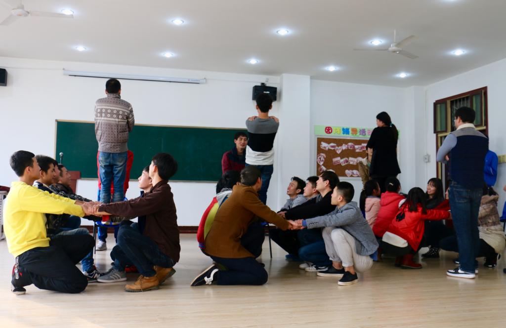 活動(dòng)開(kāi)始,靳偉濤老師介紹了本次活動(dòng)的項(xiàng)目及規(guī)則,活動(dòng)內(nèi)容豐富多彩,以游戲?yàn)橹鳌?quot;服務(wù)他人"、“打招呼”、“人形波浪”、“心有千千結(jié)”、"沖出包圍圈"、"信任背摔"等有趣的游戲不僅讓同學(xué)們?cè)跉g聲笑語(yǔ)中體驗(yàn)到了活動(dòng)的樂(lè)趣,而且深刻地理解了團(tuán)結(jié)協(xié)作的重要性。最后,同學(xué)們分享了內(nèi)心的愿望和感悟,多數(shù)同學(xué)都表示,若想在游戲中取得最后的成功,團(tuán)結(jié)協(xié)作是必不可少的,只有大家心往一處想,勁兒往一處使,朝著共同的目標(biāo)努力,才能實(shí)現(xiàn)愿望。
