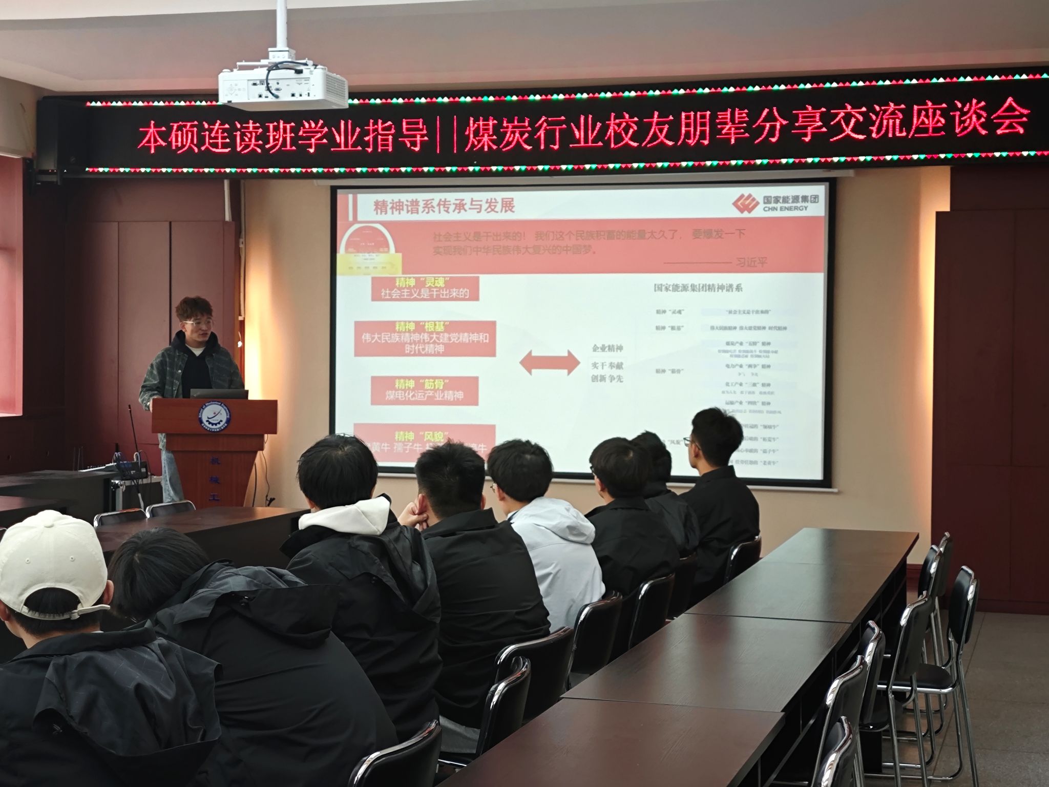 張威澤現(xiàn)就職于國能神東煤炭集團有限責任公司大柳塔煤礦。座談會上,張威澤向同學們介紹了國能神東煤炭集團有限責任公司大柳塔煤礦的發(fā)展建設、企業(yè)文化、煤礦生產(chǎn)系統(tǒng)、煤礦智能化建設情況,幫助同學們進一步了解煤炭智能化發(fā)展;重點圍繞實干、奉獻、創(chuàng)新、爭先的企業(yè)精神對自身職業(yè)發(fā)展的積極影響;同時結合個人學生時代的學習規(guī)劃、學習經(jīng)歷、科創(chuàng)競賽實踐經(jīng)歷以及入職后的工作體會,強調了《大學物理》《電工電子技術》等專業(yè)學習、具備扎實的制圖能力以及軟硬件操作技能對于提升機械學科學生職業(yè)素質能力提升的重要意義,他勉勵學弟學妹堅定成才自信,積極創(chuàng)新,刻苦學習、在本科期間夯實專業(yè)基礎,積極參加學科科技競賽,練就真才實學,立志為行業(yè)發(fā)展、強國建設貢獻青春力量。