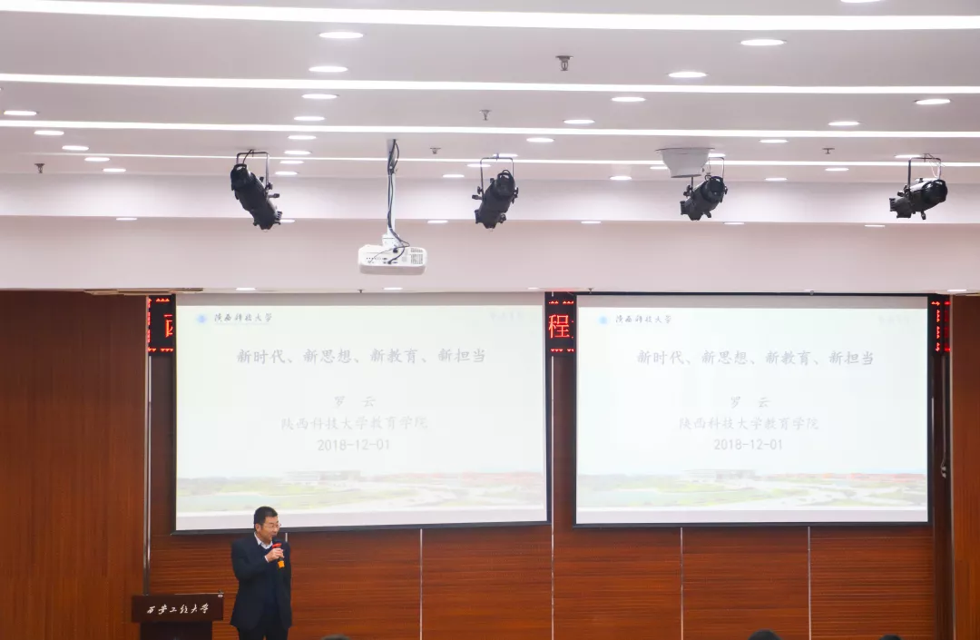 第一位是陜西科技大學(xué)特聘教授,教育學(xué)院副院長(zhǎng)羅云教授,他的報(bào)告主題是“核心價(jià)值觀與核心素養(yǎng):大學(xué)生建功立業(yè)新時(shí)代的使命與擔(dān)當(dāng)”。主要為同學(xué)們介紹了新時(shí)代、新思想、新教育、新?lián)?dāng)。最后提出了對(duì)當(dāng)代大學(xué)生的十點(diǎn)要求:1有理想;2有道德;3有知識(shí);4有能力;5有愛(ài)心;6有品位;7有激情;8有口才;9有形象;10有身體。
