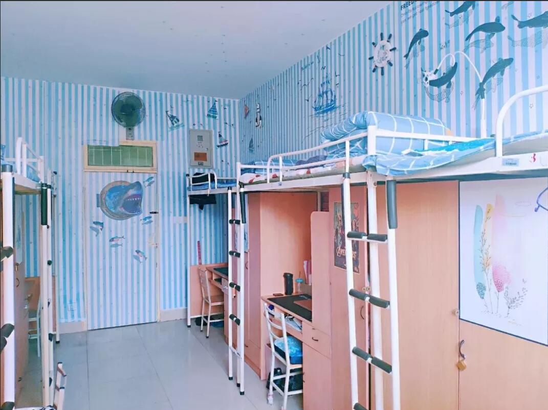 9-410 結(jié)合了大海與藍(lán)天意義的宿舍,色彩純美,線條規(guī)則,裝飾手法鮮明,全宿舍裝飾采用北歐風(fēng)格,色彩明亮,沉穩(wěn)大氣。