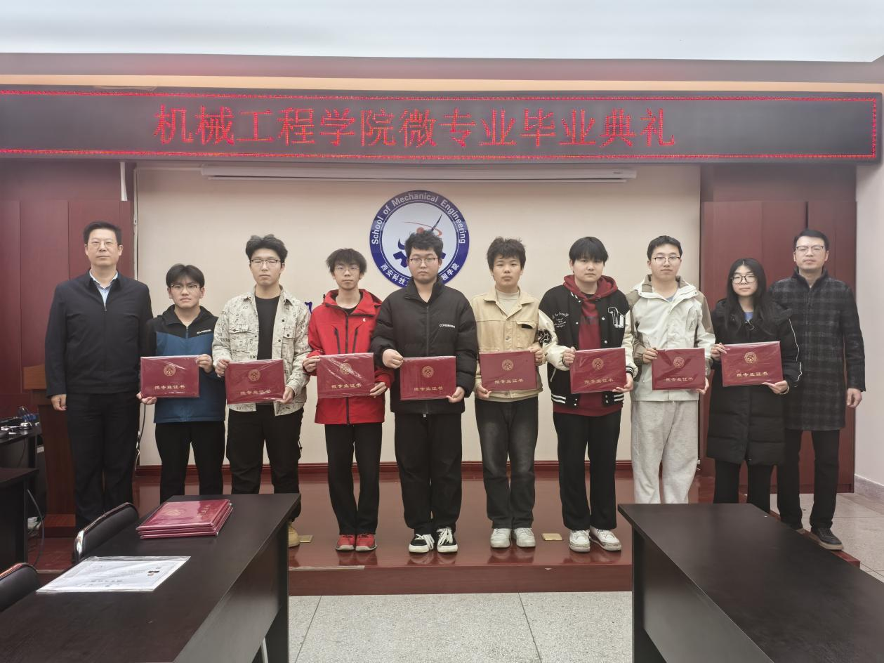 2025年11月28日下午,機(jī)械工程學(xué)院在驪山校區(qū)舉行2025年度微專(zhuān)業(yè)結(jié)業(yè)典禮。院黨委書(shū)記郭小平、各微專(zhuān)業(yè)負(fù)責(zé)人及本屆全體結(jié)業(yè)學(xué)生共同出席了此次活動(dòng),學(xué)院副院長(zhǎng)鐘斌主持典禮。