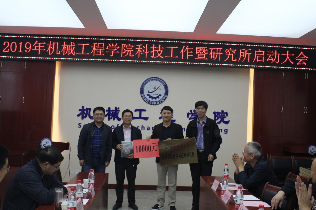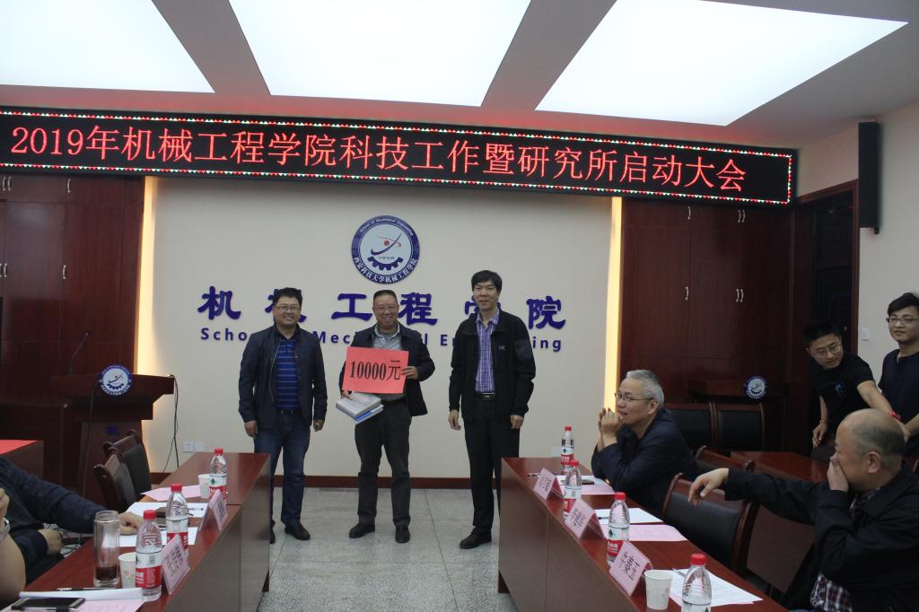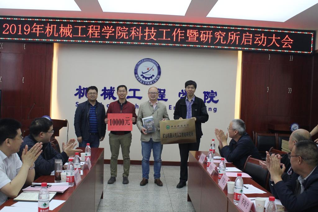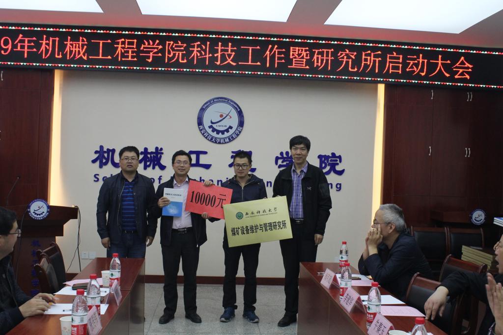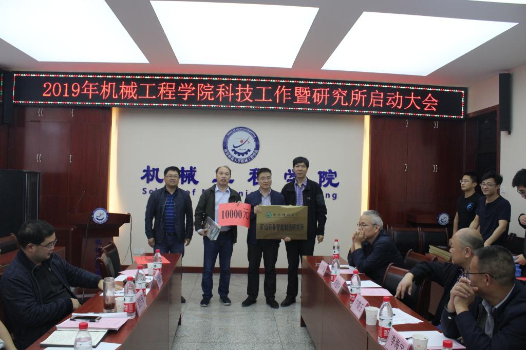 寇發(fā)榮首先宣讀了學(xué)校《關(guān)于公布第一批校級(jí)研究所(中心)立項(xiàng)建設(shè)的通知》文件,學(xué)院推薦申請(qǐng)的礦山機(jī)器人與人工智能研究所、智能車輛研究所、設(shè)備智能檢測(cè)與控制研究所、煤礦設(shè)備維護(hù)與管理研究所、車輛振動(dòng)控制與利用研究所、礦山裝備智能制造研究所、智能設(shè)備開(kāi)發(fā)與評(píng)價(jià)研究所、增材制造技術(shù)研究所、礦山機(jī)電液系統(tǒng)可靠性研究所、功能材料特種加工研究所等10個(gè)校級(jí)研究所獲準(zhǔn)設(shè)立;同時(shí),公布了《關(guān)于對(duì)機(jī)械學(xué)院校級(jí)研究所啟動(dòng)資助的方案》:本年度對(duì)依托學(xué)院建設(shè)的校級(jí)研究所給予一定經(jīng)費(fèi)資助,以后每年的具體資助額度按照各研究所前一年的業(yè)績(jī)予以調(diào)整。