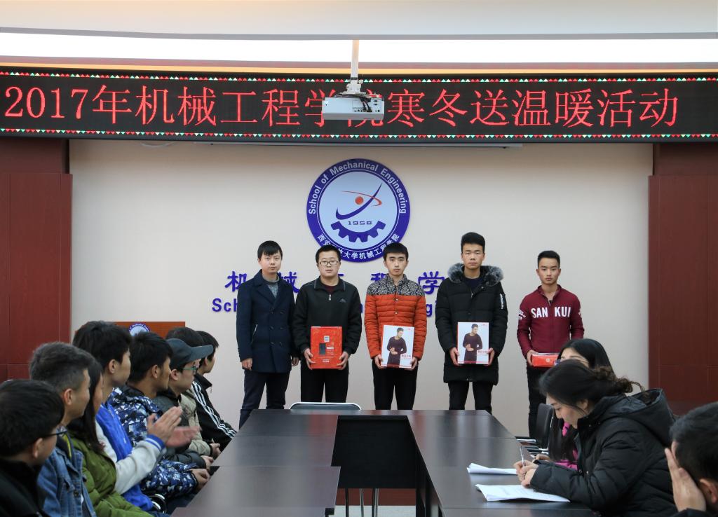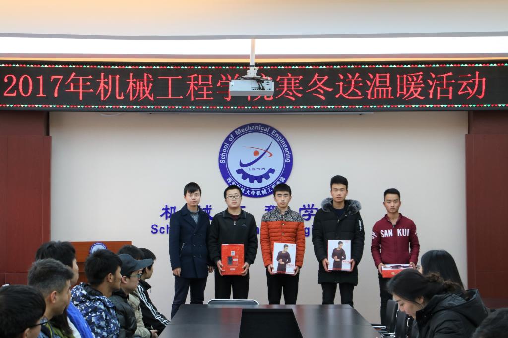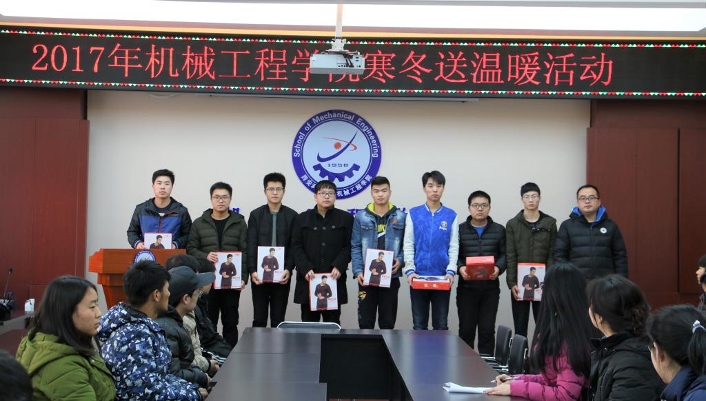 2017年12月18日,為切實(shí)解決家庭經(jīng)濟(jì)困難的學(xué)生寒冬御寒問題,關(guān)心和幫助經(jīng)濟(jì)困難同學(xué),為他們送去溫暖,機(jī)械工程學(xué)院在十教320會(huì)議室舉行了寒冬送溫暖活動(dòng)。機(jī)械工程學(xué)院黨委副書記李婉麗老師、各級(jí)輔導(dǎo)員老師及受助學(xué)生共同參加了此次活動(dòng)。