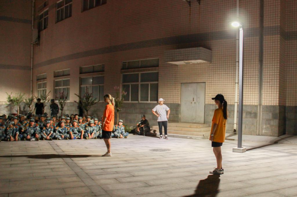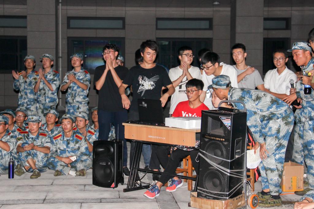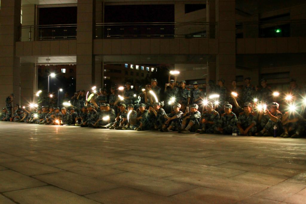 在秋風(fēng)吹拂的夜晚,晚會的氣氛因?yàn)楣?jié)目的歡樂到達(dá)了高潮,不斷地有同學(xué)自告奮勇的上臺表演,現(xiàn)場的燈光閃爍猶如天邊星,照在每個人的臉上,映出了最青春的笑容,軍訓(xùn)雖累,但歡樂同在!