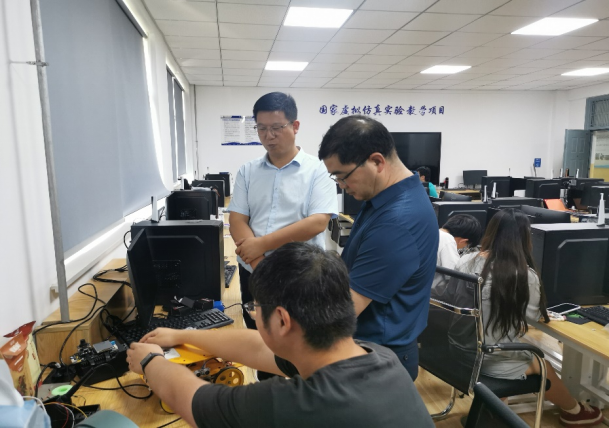 曹現(xiàn)剛對各團隊不畏酷暑、心無旁騖專注科研創(chuàng)新實踐表示充分的肯定和贊賞,他在與團隊成員們互動切磋交流中指出,科研創(chuàng)新團隊的發(fā)展建設(shè)以及同學們積極參與科研競賽,有利于打破學科與專業(yè)壁壘,推進跨學科交叉聯(lián)合開展科研,全面提升學校科技創(chuàng)新能力,加快杰出科技創(chuàng)新型人才培養(yǎng),他勉勵大家要堅定理想信念,心懷“國之大者”,將學院科技創(chuàng)新實驗室平臺提供的資源充分融入個人的學業(yè)發(fā)展和職業(yè)生涯規(guī)劃,勇?lián)萍紡妵ㄔO(shè)的時代使命,努力成長為新時代創(chuàng)新型高素質(zhì)人才。