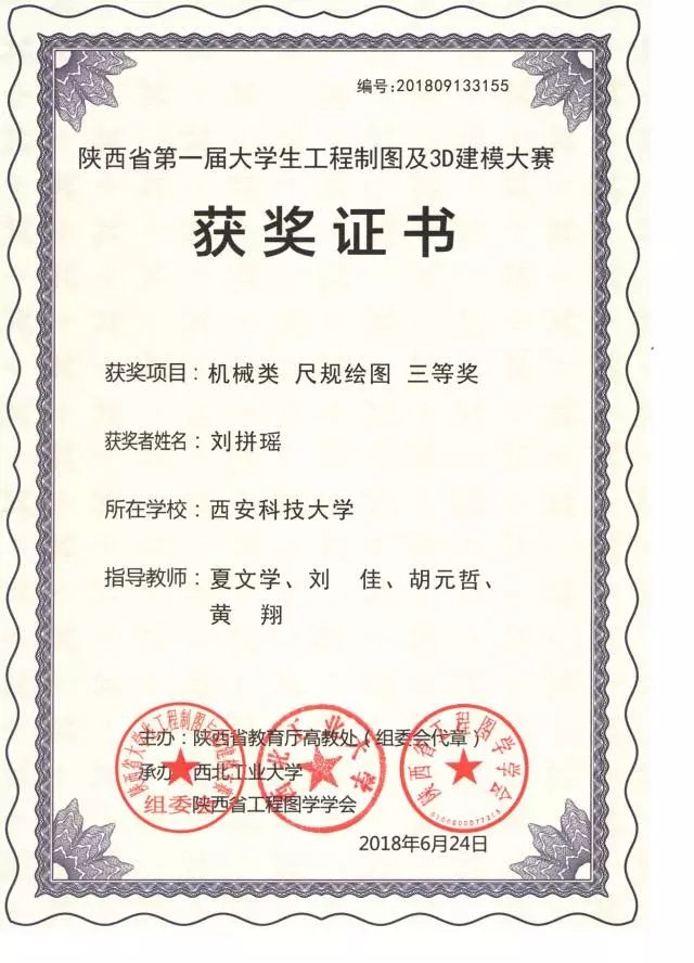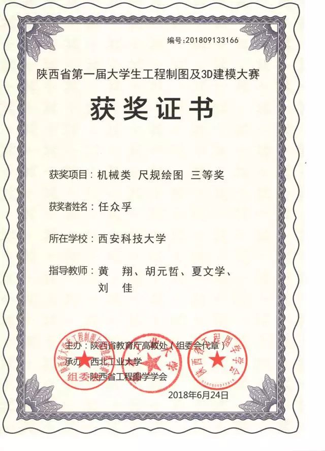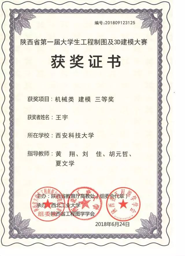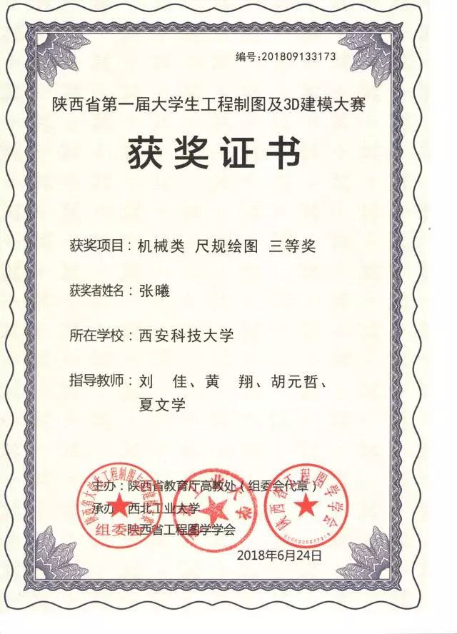 “陜西省第一屆大學(xué)生工程制圖及3D建模大賽” 于6月22至24日在西北工業(yè)大學(xué)舉行。經(jīng)過激烈角逐,張曦(機(jī)設(shè)1505)、王宇(車輛1501)、任眾孚(機(jī)械類1712)、張磊(機(jī)械類1708)、劉拼瑤(機(jī)械類1713)榮獲個(gè)人單項(xiàng)工程制圖及3D建模共計(jì)八項(xiàng),同時(shí)取得了機(jī)械類團(tuán)體三等獎(jiǎng)。