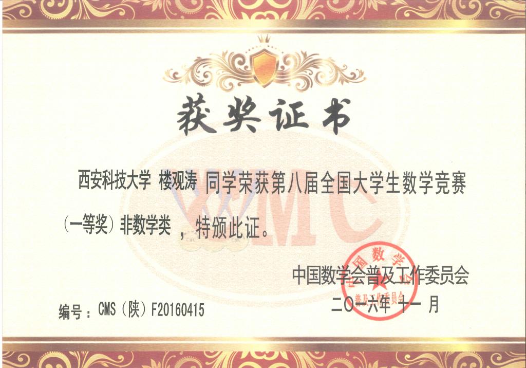 熱烈祝賀機(jī)械工程學(xué)院24名學(xué)子榮獲第八屆全國(guó)大學(xué)生數(shù)學(xué)競(jìng)賽大獎(jiǎng)。其中樓觀濤等8人獲得一等獎(jiǎng),師振等3人獲得二等獎(jiǎng),張力力等13人獲得三等獎(jiǎng)。祝賀他們?nèi)〉眉芽?jī),為機(jī)械學(xué)院學(xué)院爭(zhēng)得榮譽(yù)。