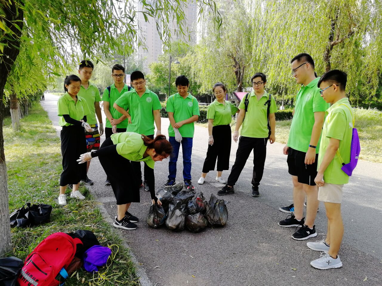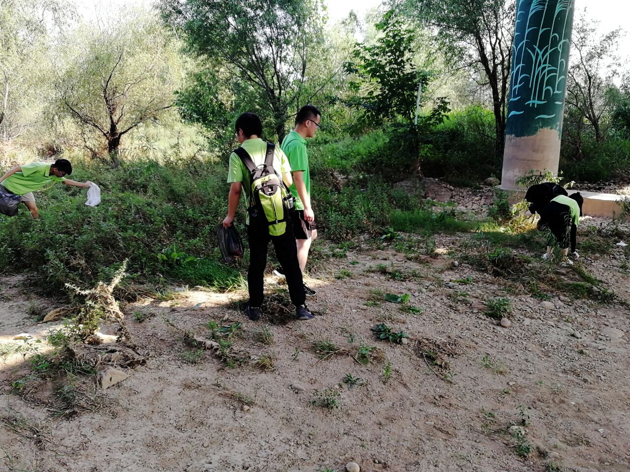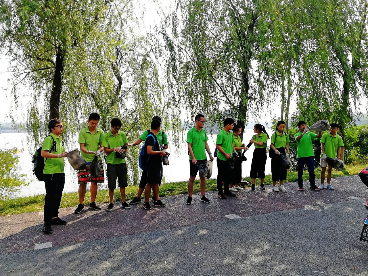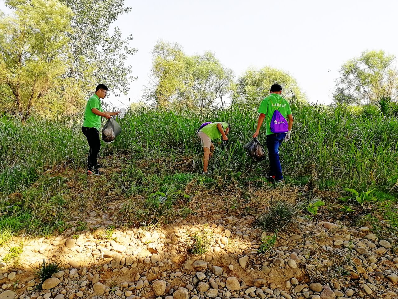 早上環(huán)保志愿者們在團隊老師李帥田的帶領(lǐng)下來到了濕地公園,由于此處為公園,所產(chǎn)生的垃圾大多是公眾不經(jīng)意間落下的塑料水瓶或者紙巾。實踐隊員人手一個黑色塑料袋,帶著專業(yè)撿垃圾手套,沿著灞河旁邊的小路,隊員通過自己的尋找,找到了許多被遺棄的垃圾。還通過一條小路下到了灞河邊上,打撈了些許沿水漂流的垃圾。保護了水質(zhì)的清潔。