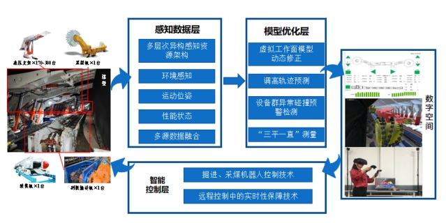 2014年以來(lái),張旭輝教授聚焦巷道近程或地面遠(yuǎn)程智能掘進(jìn)場(chǎng)景控制需求,帶領(lǐng)團(tuán)隊(duì)不斷探究智能掘進(jìn)關(guān)鍵技術(shù)難題,為煤礦巷道掘進(jìn)智能化相關(guān)理論與技術(shù)研究奠定了堅(jiān)實(shí)基礎(chǔ),通過(guò)對(duì)煤礦智能化裝備的創(chuàng)新研發(fā),在煤礦采掘工作面智能截割技術(shù)、虛擬數(shù)字工作面構(gòu)建及遠(yuǎn)程控制、智能采掘裝備研發(fā)方面突破了多項(xiàng)關(guān)鍵核心技術(shù),以“DT+VR” 遠(yuǎn)程決策、“視覺(jué)+”位姿測(cè)量、“人工示教”記憶截割,以及“虛擬設(shè)備”碰撞預(yù)警等四大核心技術(shù),解決了智能決策、精確定位(定向?qū)Ш胶统尚钨|(zhì)量的基礎(chǔ))、軌跡規(guī)劃和設(shè)備群碰撞預(yù)警難題。核心技術(shù)先后在陜煤小保當(dāng)、榆林大海則、山西王家?guī)X等煤礦井下掘進(jìn)工作面進(jìn)行了驗(yàn)證,為解決煤礦遠(yuǎn)程智能掘進(jìn)提供了新的實(shí)現(xiàn)路徑。為全面推進(jìn)煤礦智能化發(fā)展積累了寶貴的經(jīng)驗(yàn),通過(guò)不斷地進(jìn)行理論、技術(shù)與裝備創(chuàng)新,為推動(dòng)我國(guó)煤炭工業(yè)快速發(fā)展提供有力支撐。